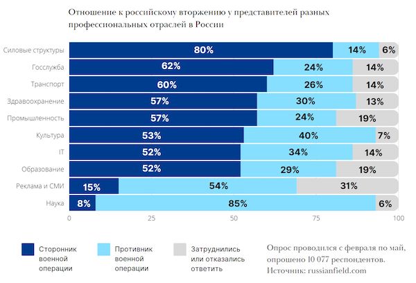 Молодих фахівців без ступеня можуть призвати — притому, що противників війни серед російських учених особливо багато. У перші дні російського вторгнення понад 7000 учених підписали лист проти проведення «спеціальної військової операції» в Україні. Навесні соцопитування показали, що 85% працівників науки проти російської агресії. А за даними соціологічного дослідницького проекту Russian Field, війну проти України підтримали лише 8% вчених.