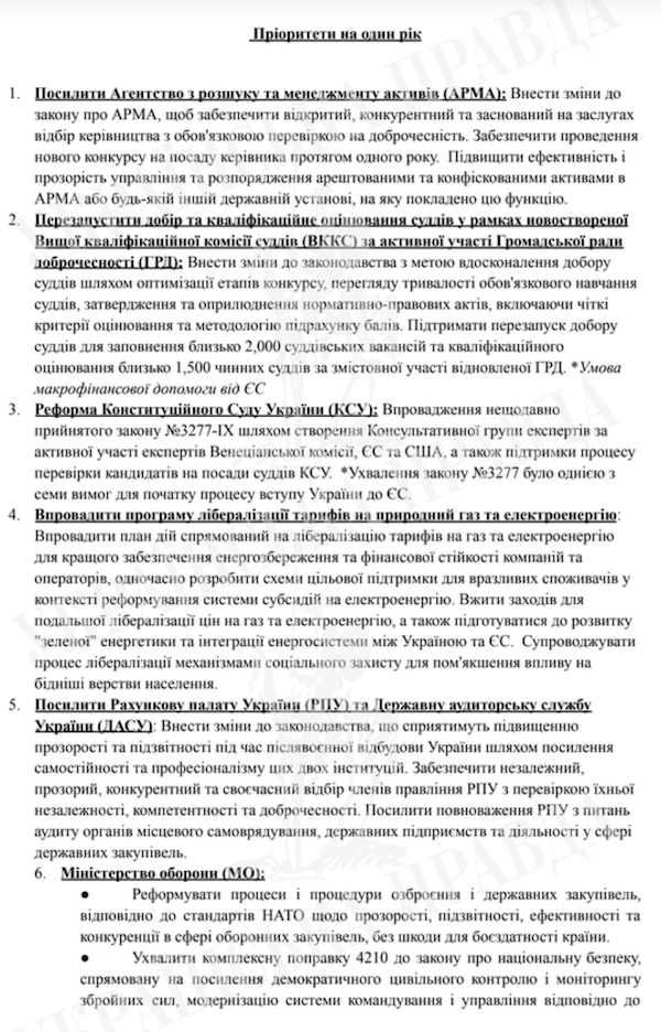 Білий дім оприлюднив листа із реформами, які мусить зробити влада України для отримання допомоги