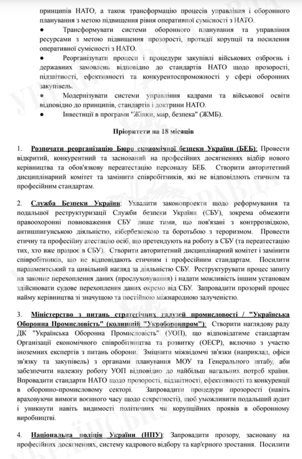 В документі прописані зміни по пріоритетності їх впровадження: 0-3 місяці, 3-6 місяців, один рік, 18 місяців.
