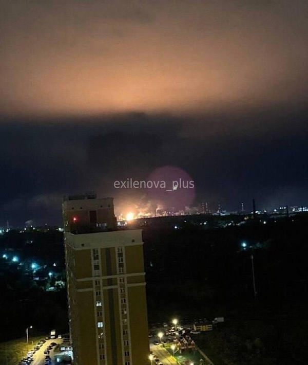 Так, місцеві жителі повідомляють, що внаслідок атаки безпілотників палає НПЗ.