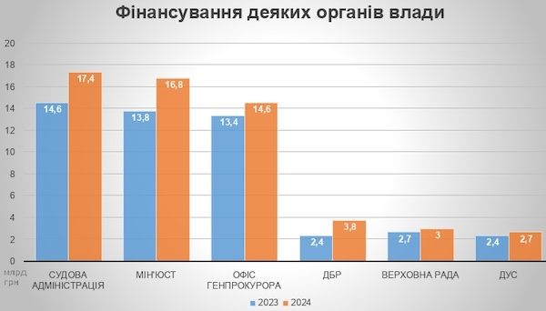 При цьому збільшення видатків передбачене переважно саме на оплату праці. Наприклад, зарплатний фонд для Державного бюро розслідувань (ДБР) наступного року зросте майже на третину – з 1,8 мільярда до 2,6 млрд грн, для Міністерства юстиції – на 27% (до 10,68 млрд грн), для Державної судової адміністрації – на 14% (до 14,9 млрд грн).