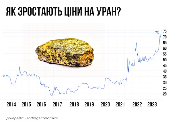Вихід один – підвищити ціни, щоб привабити інвесторів. Лише за рік вартість урану на спотовому ринку зросла майже на 40% – до 73 дол за фунт (0,45 кг). І це лише початок.