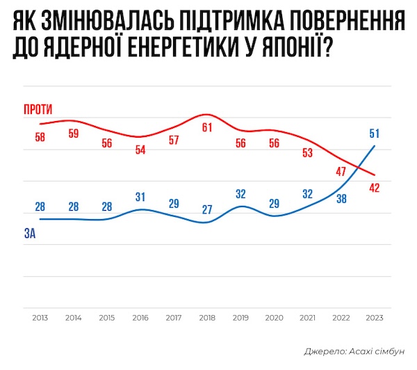 Чудовий приклад – Японія. Після аварії на АЕС "Фукусіма-1", влада закрила більшість ядерних реакторів та зменшила частку атомних станцій у виробництві електрики з 30% до 4%. Енергосистему перебудували під природний газ та вугілля, які купували на світовому ринку.