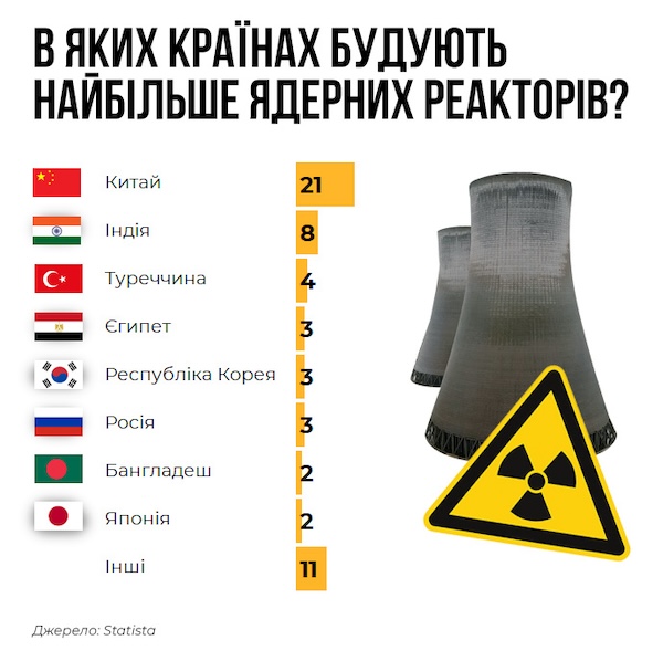 Китай постійно зростає та потребує більше енергії, однак 60% електрики виробляє з вугілля. Влада планує відмовитись від цього енергоносія до 2060 року. Щоб замінити вугільні електростанції, країна планує будувати шість-вісім нових ядерних реакторів на рік. Разом в Китаї та Індії зараз будують 29 з 57 нових реакторів, які зводять по всьому світу.
