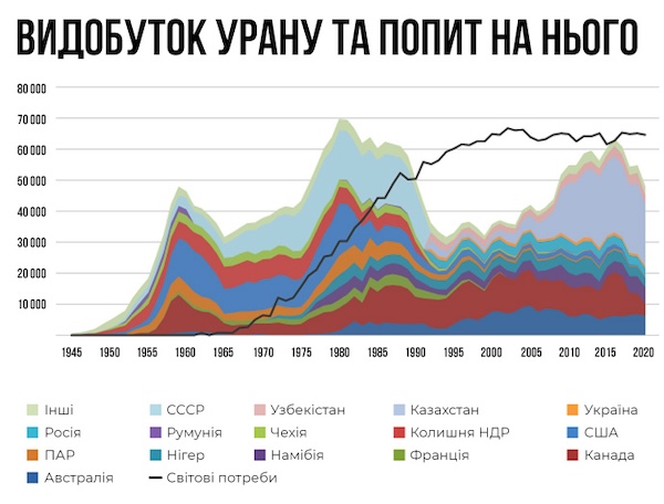 Річ у тім, що видобуток урану зазвичай відстає від попиту. У 2022 році шахти покрили лише 74% потреби АЕС. Решта припадає на вторинні джерела сировини: повторно перероблений "збіднений" уран, комерційні запаси та високозбагачений уран з ядерних арсеналів.