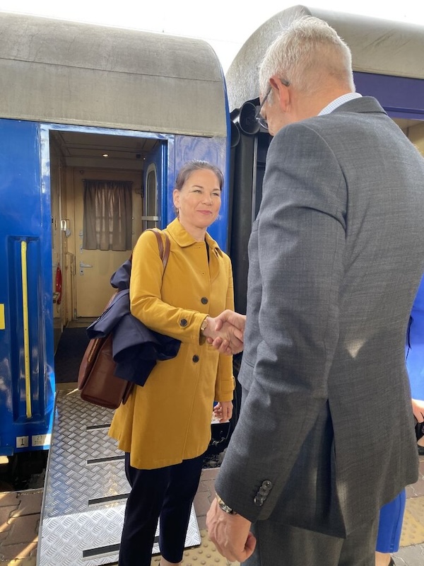 "Наша підтримка ґрунтується на глибокому переконанні, що Україна переможе у цій війні. Путін спекулює на тому, що в якийсь момент у нас вичерпаються сили, але у нас є сила духу. Разом з багатьма іншими країнами з усіх куточків світу Німеччина непохитно стоїть на боці України. Народ України може спиратися на це в довгостроковій перспективі. Ми продемонструємо це дуже чітко в червні, коли запросимо світ на Конференцію з відновлення України в Берліні. Разом з нашими партнерами по всьому світу та міцним альянсом бізнесу, громадянського суспільства та місцевої влади ми інвестуємо в довгостроковий страховий поліс для майбутнього України", - заявила Бербок після прибуття. Її слова цитує кореспондент DW з Києва.
