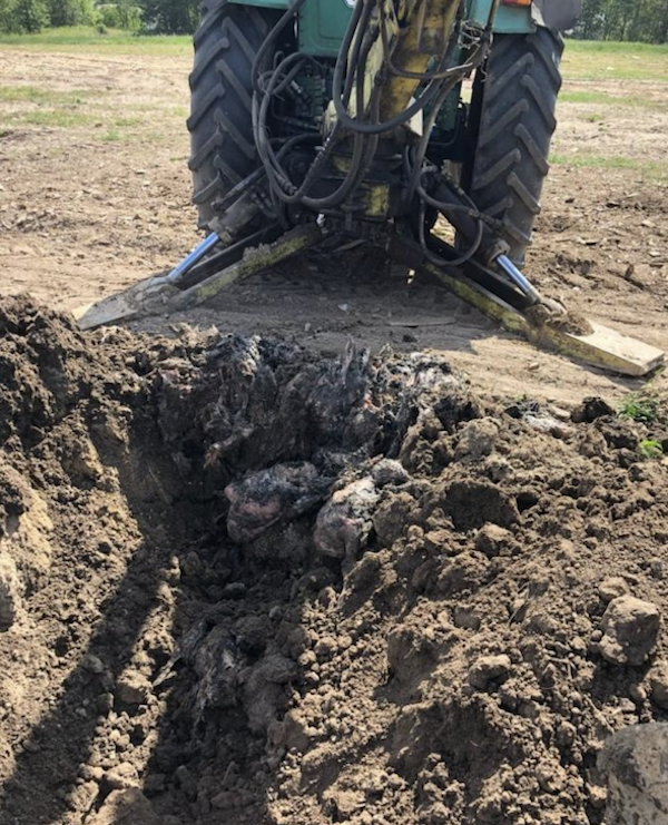 Десятки тисяч тонн тушок підприємство не змогло утилізувати належним чином, і пішло по шляху найменшого опору: трупи вивезли і «прикопали» на полях на території Гавриловської сільради. Інакше кажучи, власники ТОВ «Комплекс Агромарс» Євген і Марина Сігал, директор філії «Гаврилівський птахівничий комплекс» організували масштабний могильник загиблої птиці, через що місцеві громадяни потерпали від нестерпеного смороду, забрудненої води та спалаху хвороб. Місцеві активісти виявили поле, розташоване поряд з с. Гаврилівка за 1.3 км від житлових будинків з тонами трупів курей, кровʼю, пірʼям та іншими відходами курячого виробництва.