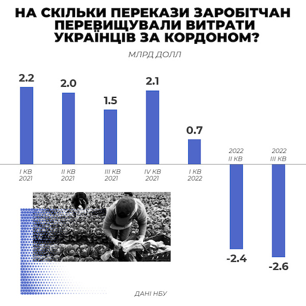 Утім, навіть попри стабільні надходження від заробітчан 2022 рік став, мабуть, першим, коли витрати українців за кордоном перевищили перекази в Україну.