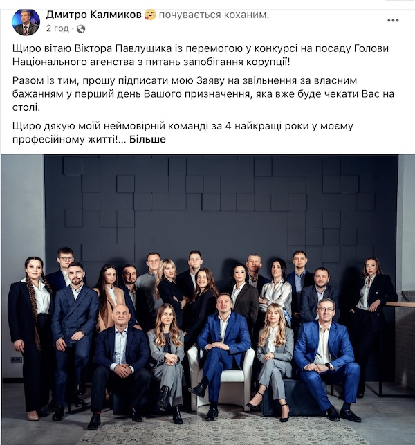 У неділю увечері було обрано нового голову Національного агентства з запобігання корупції. Ним несподівано для багатьох став детектив НАБУ Віктор Павлущик, за якого одноголосно проголосували всі члени комісії. Натомість заступник голови НАЗК Дмитро Калмиков, якого багато хто бачив фаворитом, отримав лише три голоси підтримки.
