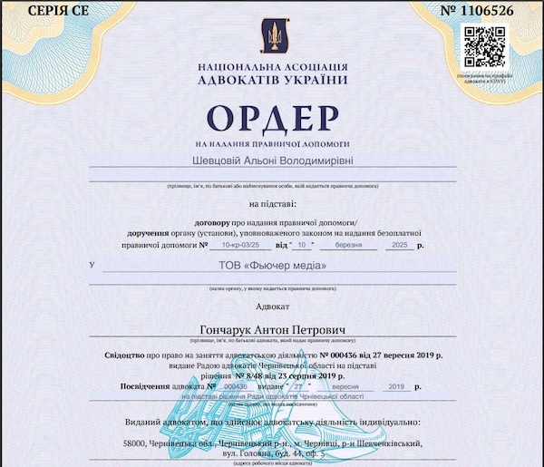 (Цитата пряма: “Прошу: Негайно припинити будь-яке використання зображень (фотографій, відеоматеріалів) щодо Шевцової Альони Володимирівни, Свитки Артема Сергійовича, Давидченка Андрія Васильовича.