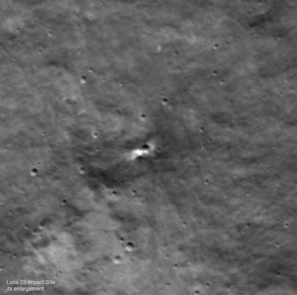 Збільшене в 4 рази зображення місця падіння Луни-25 з LRO. NASA