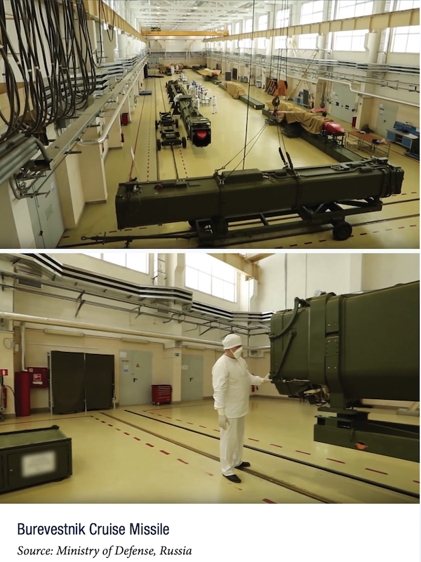 Про розробку міжконтинентальної крилатої ракети «Буревісник» Путін розповів у 2018 році під час послання до Федеральних зборів. Американський аналітичний центр Nuclear Threat Initiative писав із посиланням на дані американської розвідки, що з 2017 по 2019 роки Росія провела не менше 13 випробувань «Буревісника», але лише два з них виявилися «частково успішними». У серпні 2019 року на полігоні під Сєвєродвінськом в Архангельській області стався вибух, під час якого загинуло семеро співробітників «Росатому» та Міноборони. Пізніше влада визнала, що вибух стався на об'єкті, який міг бути джерелом радіації. Трамп, який на той момент обіймав посаду президента вперше, був стурбований «невдалим вибухом ракети в Росії».