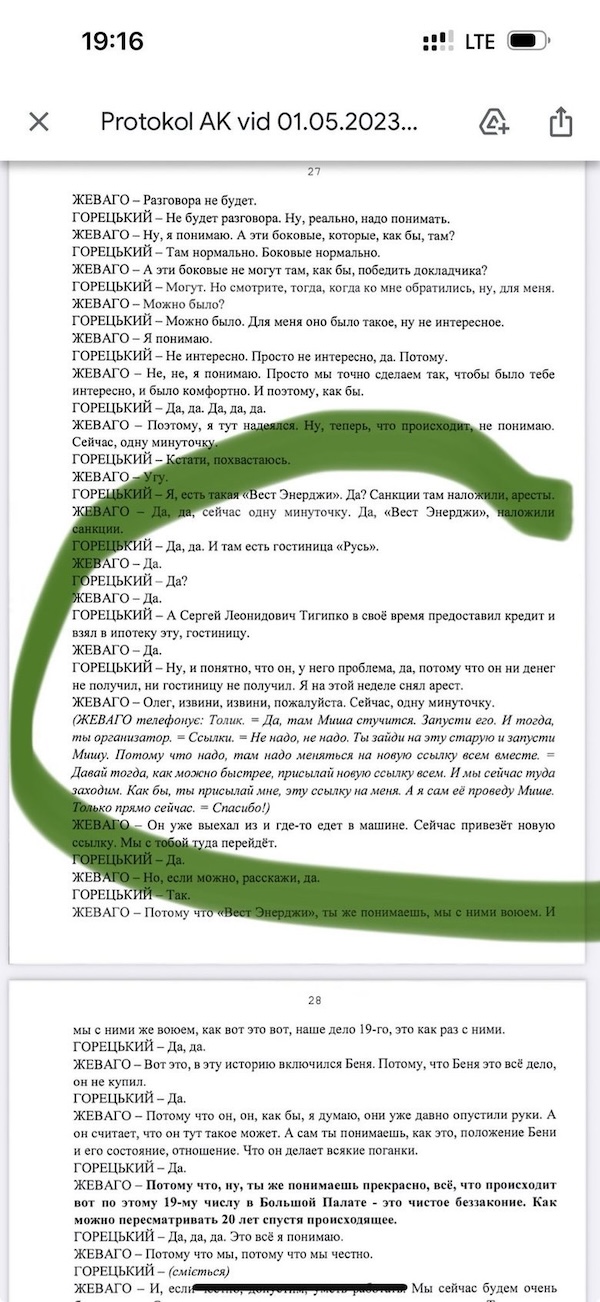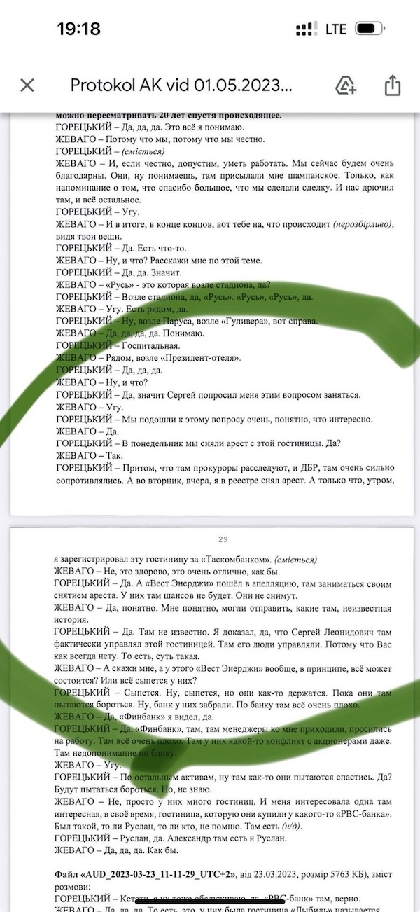 Але це ще не все про взірцеву бізнес-модель Тігіпка. 2 роки тому до мене потрапило трошки матеріалів по справі Князєва. І там є епізод, де спільник Князєва Горецький говорить з Жеваго. І знаєте, що вони серед іншого обговорюють? Як для Тігіпка зняли арешт з готелю "Русь". Горецький прям хвалиться, що зробив це в обхід супротиву ДБР і прокурорів.