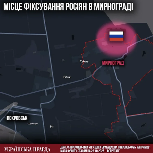 Ситуація в Покровську та Мирнограді погіршується вже кілька місяців і наразі є критичною. Росіяни продовжують контролювати повітряний простір, постійно літаючи на FPV-дронах, що ускладнює логістику українських підрозділів. Покровськ і Мирноград, вже не перший місяць перебувають в умовах дронового оточення і ризикують опинитися в реальному оточенні в кінці жовтня, додає "Українська правда".