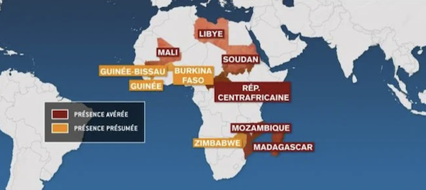 Присутність «Вагнера» в Африці: червоним – підтверджена, жовтою – ймовірна. Карта tv5monde