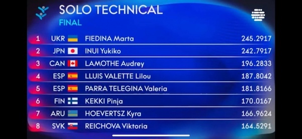 За свій виступ під пісню "Чарівна скрипка" Фєдіна отримала 245.2917 бала, випередивши на два з половиною бали приму японської команди Юкіко Інуі, яка стала срібною призеркою.
