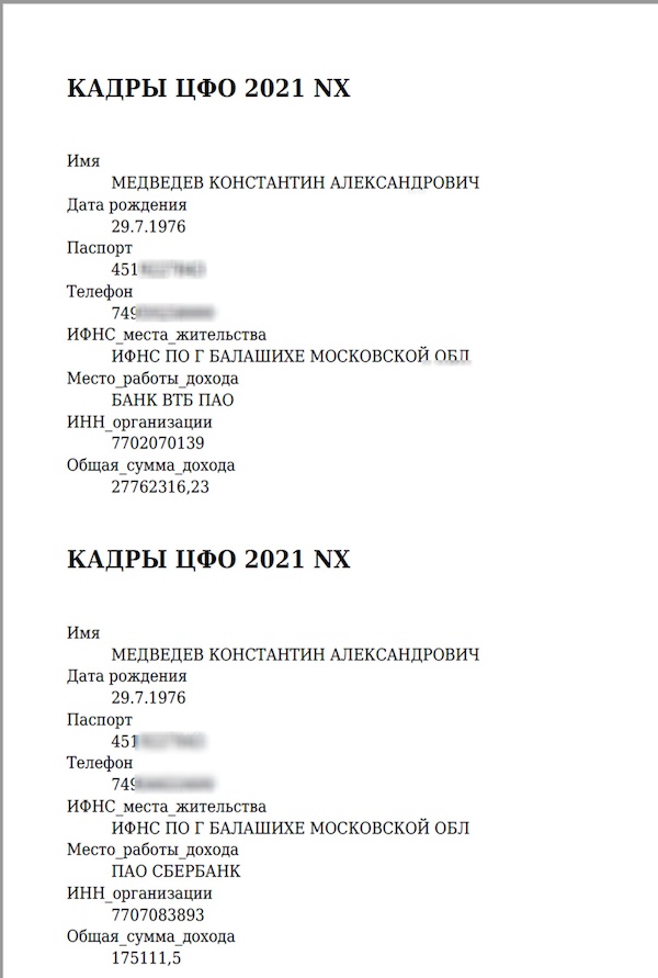 Хоч би якими були робочі завдання Медведєва, оплачувались вони добре. Судячи з виписки з податкової, тільки в 2021 році він отримав дивідендами від Ощадбанку і ВТБ 45 млн рублів (за тим курсом — понад півмільйона євро), і це при тому, що середня зарплата офіцера в Росії складає близько 50 тисяч рублів.