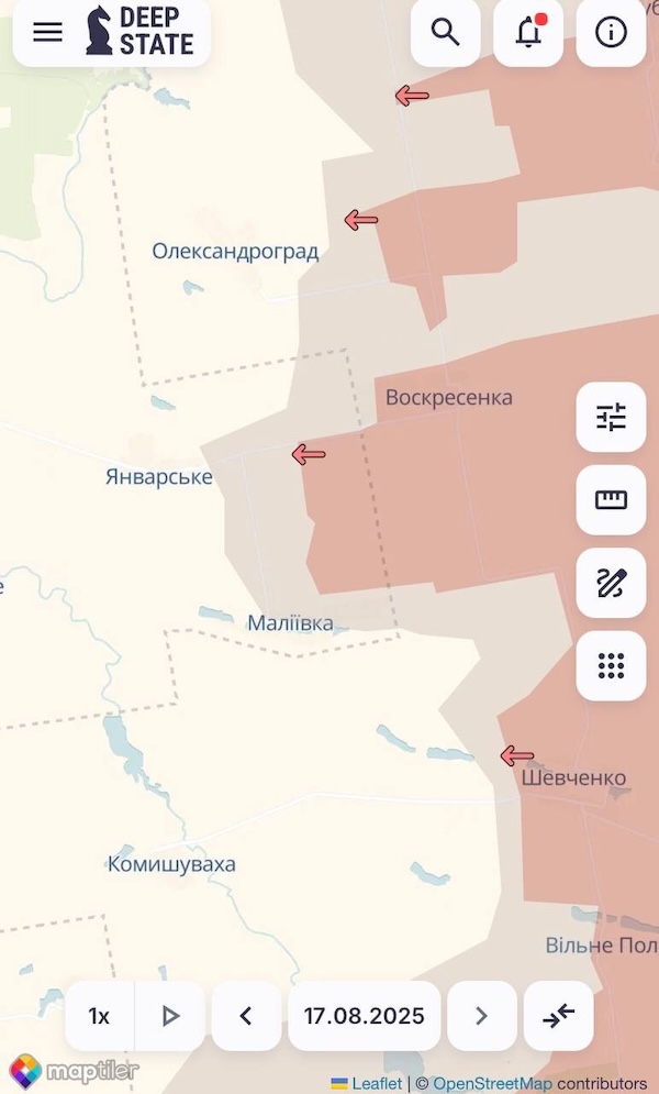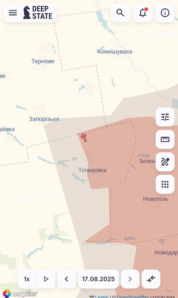 "Мапу оновлено. Ворог просунувся біля Григорівки, Воскресенки (Донецька обл.) та Темирівки (Запорізька обл.), - сказано в повідомленні.