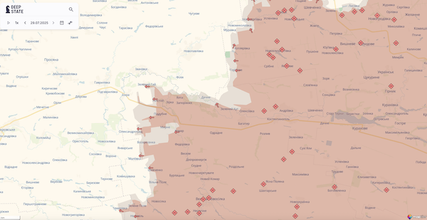 "Мапу оновлено. Ворог просунувся біля Разіного ( село Гродівської селищної громади Покровського району Донецької області), Темирівки (село у Гуляйпільській міській громаді Пологівського району Запорізької області), Маліївки (село у Синельниківському районі Дніпропетровської області), Олександрограда (село Комарської сільської громади Волноваського району Донецької області) та в Яблунівці (село Іллінівської сільської громади Краматорського району Донецької області)", - йдеться у повідомленні.