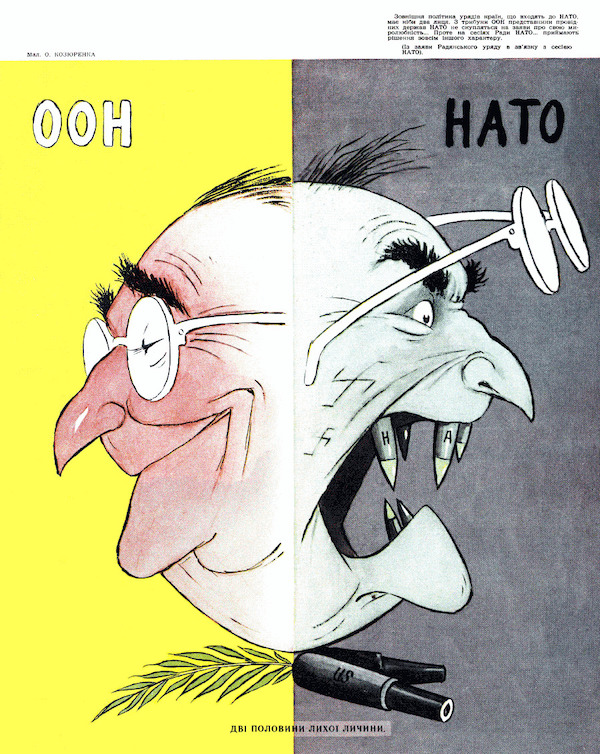 Десятиліттями радянська пропаганда змальовувала Північно-атлантичний альянс як агресивний блок, керівники якого щоранку прокидаються з думкою, яку б війну ще розпочати. На оцих шизофренічних стереотипах спекулювали політики.