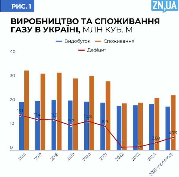 Наприклад, в останній довоєнний 2021 рік споживання становило 28,7 млрд кубометрів газу, а власний видобуток — лише 19,8 млрд.