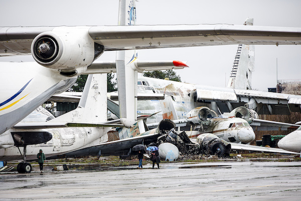 Залишки літаків на летовищі в Гостомелі. Фото: ДМИТРО ЛАРІН