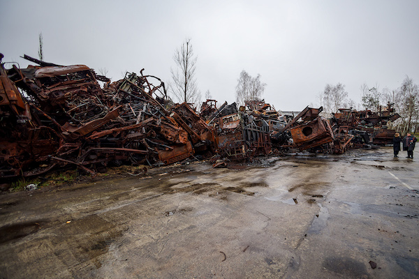 Залишки російської техніки біля аеропорту в Гостомелі. Фото: ДМИТРО ЛАРІН