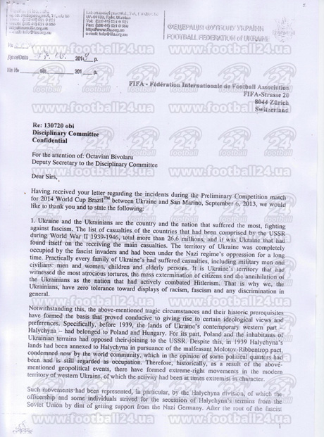 Об этом сообщает Футбол24 и приводит оригинал документа в ФИФА от ФФУ.
