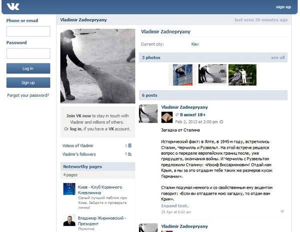 В сети прокурор Владимир Заднипряный показал себя не только как любитель мудрости Сталина: но и как активный участник групп:"Русский Крым" , "Я не был на Майдане!" , "Георгиевская Ленточка", "Я Гражданин СССР" , "Гражданин СССР". Ну разве такой человек не заслуживает майорские погоны прокурора в рядах прислужников Партии Регионов?