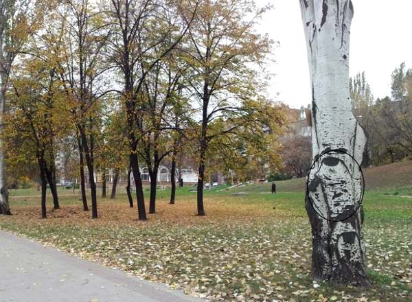 В Донецке на тополе проявился нерукотворный лик Януковича, чудо явления образа произошло в самом центре города.