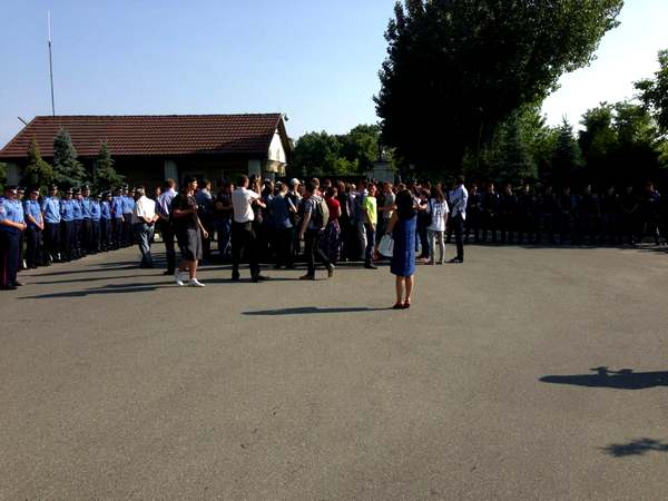 Добравшись до цели, журналисты обнаружили, около 40 сотрудников Беркута, которые заблокировали колонну возле центрального въезда в резиденцию Межгорье.