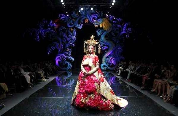 Известный китайский модельер Гуо Пей (Guo Pei) представил вчера свои творение во время недели азиатской моды в Сингапуре.