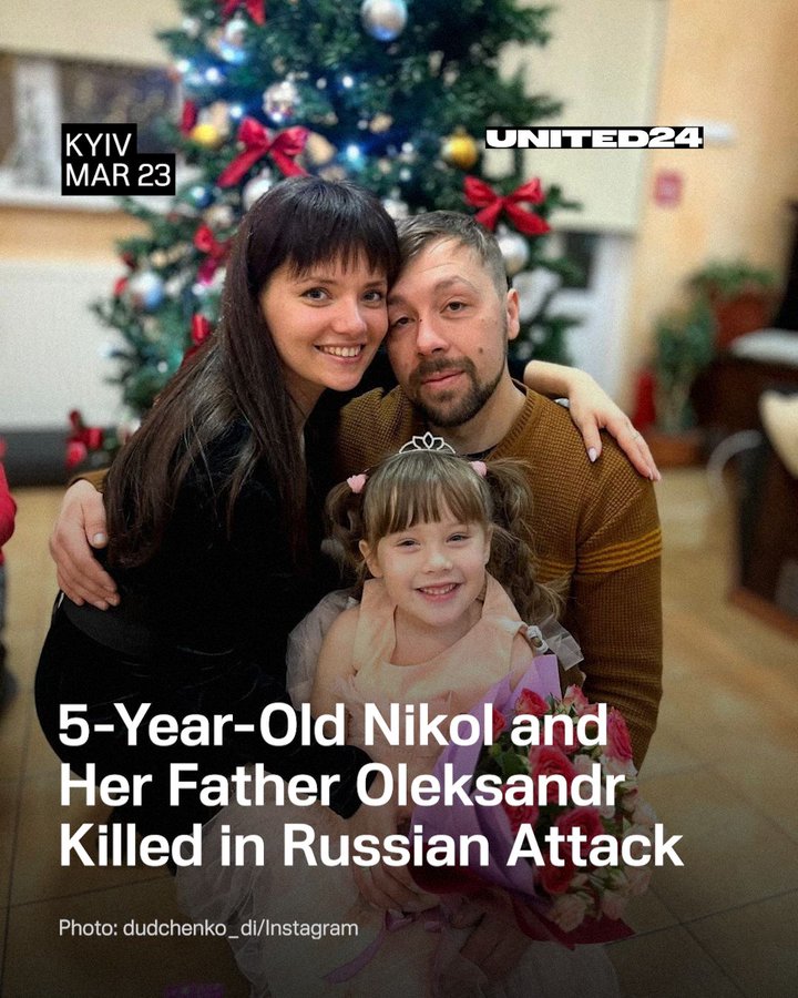 Як повідомляє видання "UNITED24 Media", внаслідок удару загинули 5-річна дівчинка Ніколь та її батько Олександр. Родина нещодавно переїхала до столиці з прифронтового міста Оріхів Запорізької області. Мати дитини зараз перебуває в лікарні, де медики борються за її одужання.