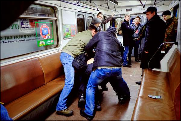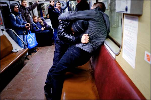 Реминисценция. Бытовая потасовка в киевском метро.Обошлось без крови. Разняли.Оставлен порядок кадров.