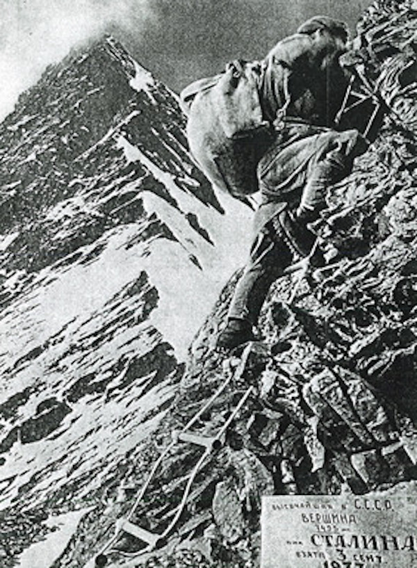 Атмосферу, которая царила в группах альпинистов того времени, лучше всего описал Григорий Розенцвейг. Этот 39-летний врач и доцент МГУ регулярно делал отчеты о восхождениях для советских журналов. Вот отрывок одного из них: «На вершине 7127 метров в 6 вечера обнаруживаем бюст В.И. Ленина, обернутый красным сукном. Мы кладем рядом с бюстом томик Сталинской Конституции. Раздается дружное “Ура!” в честь великой нашей Родины, в честь руководителей партии и правительства, в честь великого Сталина».