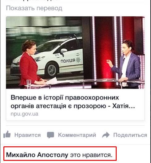 9 июня во время встречи с общественностью начальник ГУ Нацполиции в Житомирской области Вячеслав Печененко, неумело попытался отмазать «Москву»: «Я понял по кому там стоял вопрос, гражданин Фадеев. На мой запрос предоставили справку официальную о том, что указанный человек никакого отношения к криминальной среде не имеет. Дело в том, что во всех электронных базах он не проходит», - отметил Вячеслав Печененко.