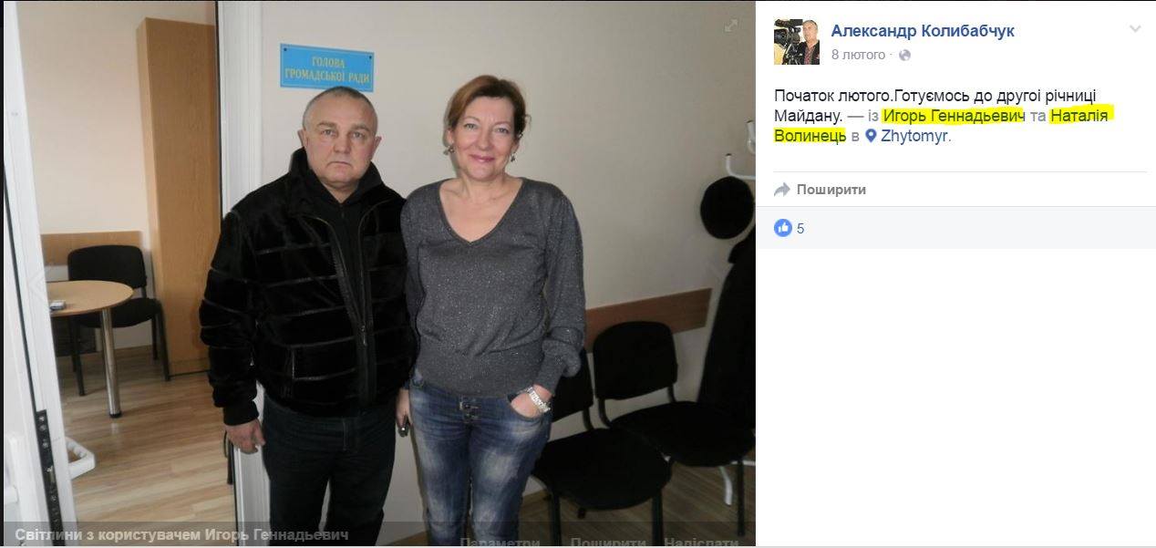 Наталья Волинець, представитель ГО ВО «Майдан Житомирської області», по совместительству коллега Игоря Геннадиевича Фадеева по громадской раде при ЖОДА и сам Игорь Геннадиевич, активист, областной депутат, районный депутат, советник главы громрады при ЖОДА, член аттестационной комиссии по отбору в патрульную полицию, несудимый, несмотрящий, неуголовный авторитет или... уголовный неавторитет или... пардон, запуталась.