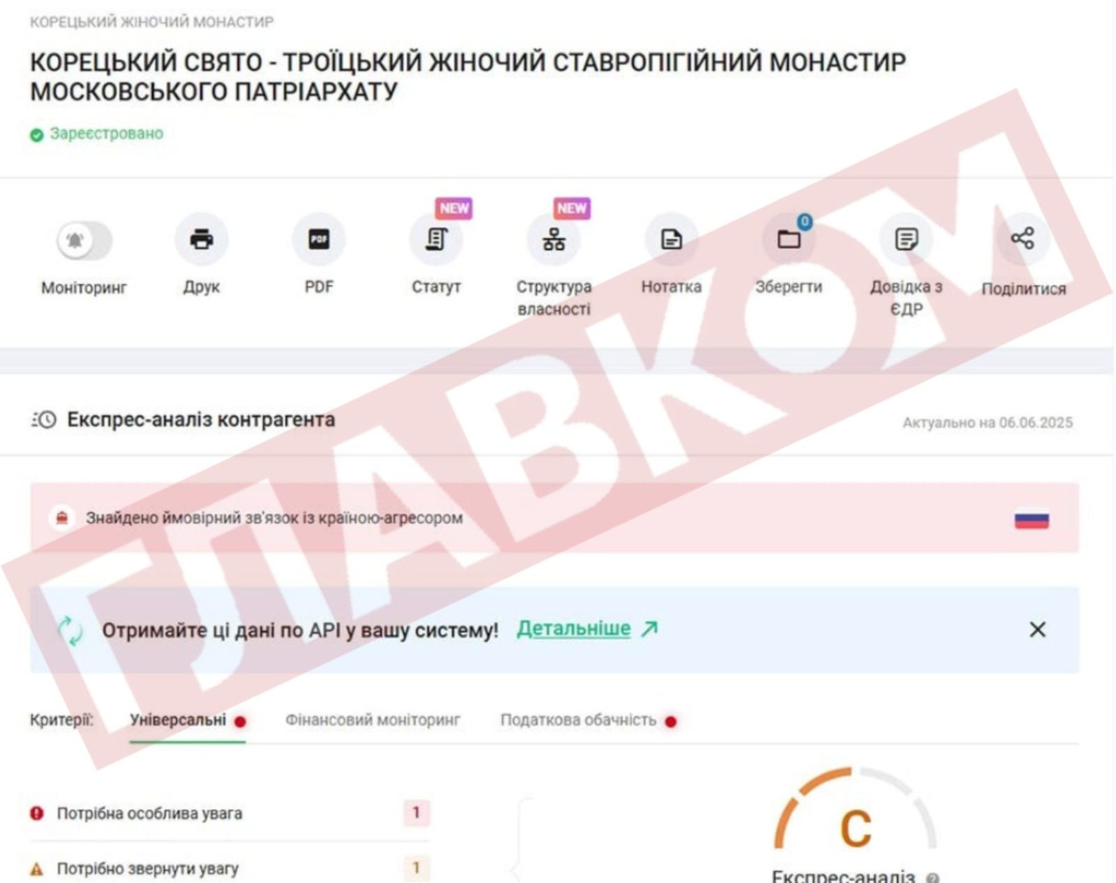 За даними аналітичної системи Youcontrol, з 2016 року незмінним засновником Корецького монастиря виступає… Священний Синод Російської православної церкви. А ігуменя монастиря, як прописано у відкритому реєстрі, напряму підкоряється російському патріарху Кирилу, який благословляє убивства українців! Між іншим, на пару місяців до вторгнення РФ в Україну Кирило призначив нову ігуменію Корецької обителі монахиню Парфенію (у миру – Галина Новак).