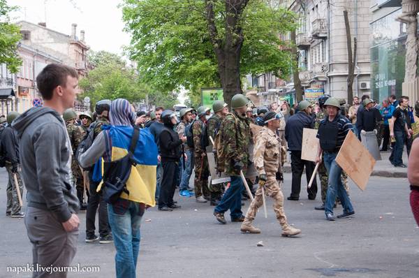 Вначале немного предыстории для тех, кто живет не в Одессе и не в курсе событий, происходивших здесь ранее. В Одессе до вчерашнего дня существовало два лагера, условно их можно назвать «проукраинским» и «пророссийским». Оба лагера проводили митинги, сборы, марши по городу, которые заканчивались максимум локальными стычками и небольшими драками.