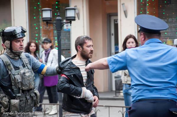 Вообще, если бы не некоторые бойцы самообороны и просто одесситы, хоть как-то пытающиеся оградить пророссийских активистов от толпы, жертв могло бы быть больше. При мне начали бить человека, защищавшего одного раненого, подумав, что он с ними заодно.