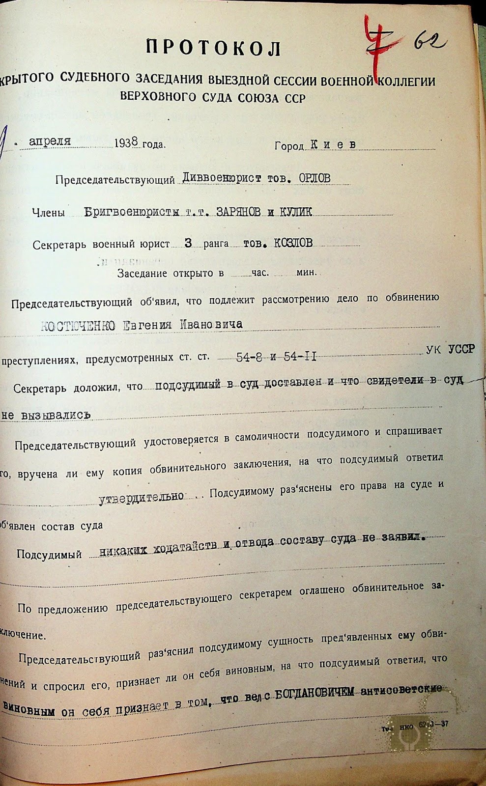 По ссылке можно посмотреть то самое дело полностью, это дело на начинающего ученого, 27-летнего инженера-химика Евгения Костюченко, там о его матери с кипой бумаг и о часах «бес стекла»: