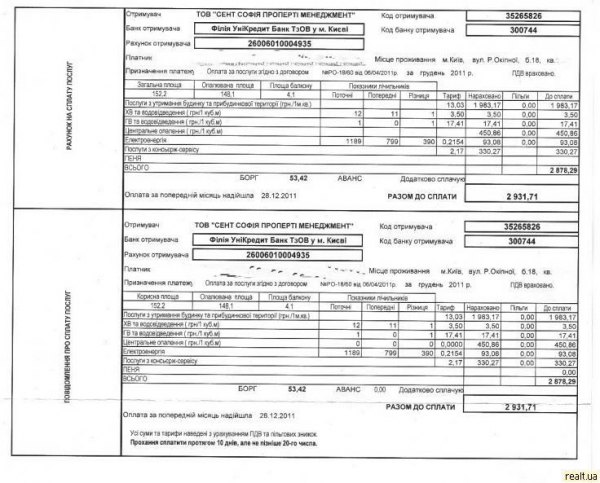 Фейковое ОСМД из Riviera Riverside подписало чрезвычайно «выгодное» соглашение с управляющей компанией. Во-первых, вместо заключения с потребителем двух необходимых договоров, как это предусмотрено законодательством, — «О предоставлении услуг по централизованному отоплению, снабжению холодной и горячей водой и водоотводу» и «О предоставлении услуг по содержанию домов и сооружений и придомовых территорий» — компания заключила только договор «О предоставлении услуг по содержанию дома и придомовой территории». С этого момента Киевводоканал, облэнерго и котельные перестали быть поставщиками воды, электроэнергии и тепла для владельцев квартир. Стороной в этих обязательствах стала упомянутая уже загадочная контора ООО «Сент София Проперти Менеджмент». И сейчас вы поймете, в чем подвох данной схемы.