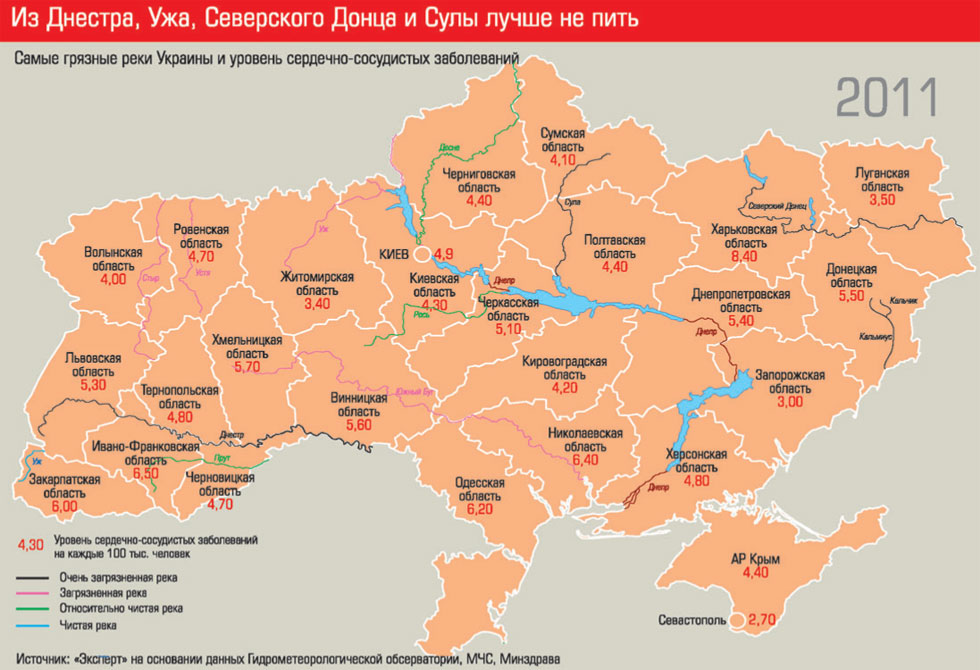 Самые грязные реки Украины и уровень сердечно-сосудистых заболеваний