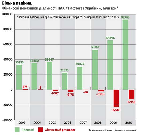 Создается впечатление, что чиновники при любой власти сознательно шли на потери компании, невзирая на угрозы, приводящие к банкротству предприятия: отключение от дешевого туркменского газа, уменьшение объемов добычи голубого топлива с украинских месторождений; устранения «Нафтогаза» из числа экспортеров энергоносителей европейским потребителям; замораживания внутренних тарифов на газ для населения и услуги по транспортировке российского газа в Европу и т.д..
