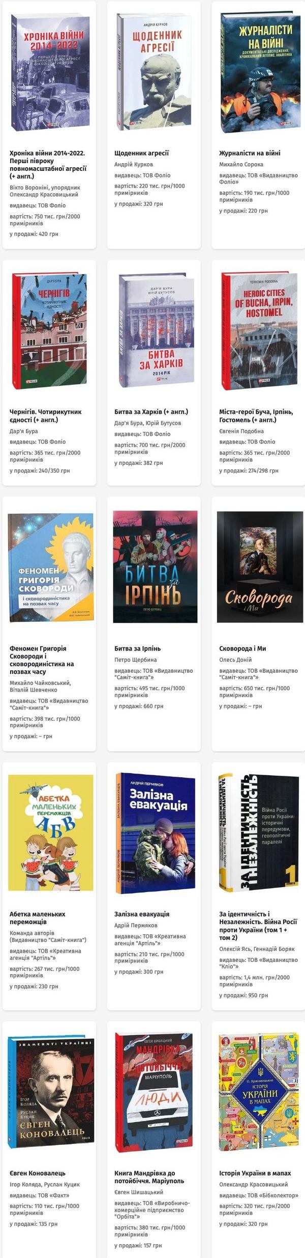 Повний список видань програми «Книга для зміцнення національної єдності»