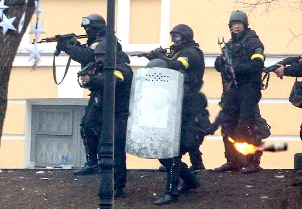 — А как оно могло быть показано? Это было, когда мы заходили в парламент через подъезд спикера. Стоял «Беркут». Половина из них бросались и кричали на нас — говорили, что мы их предали... В это время «Беркут» уже дрогнул и два его руководителя собирались переходить на сторону Майдана, это было 20-го числа. Так вот, а вторая половина «беркутовцев» говорила, что это не демонстранты по ним стреляли, а специальные провокаторы. И один из них на большом черном смартфоне показывает нам видео (была не только я, но и другие депутаты), на котором видно: парень на углу дома в одежде «беркутовца», балаклаве и шлеме, с желтой повязкой на руке привстает с корточек и даёт очередь в сторону Майдана, а потом делает то же самое в противоположную сторону.