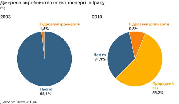 Хотя на нефть приходится наибольшая доля ВВП Ирака, страна не имеет мощностей для переработки достаточного количества нефти для потребностей собственного рынка электроэнергии.