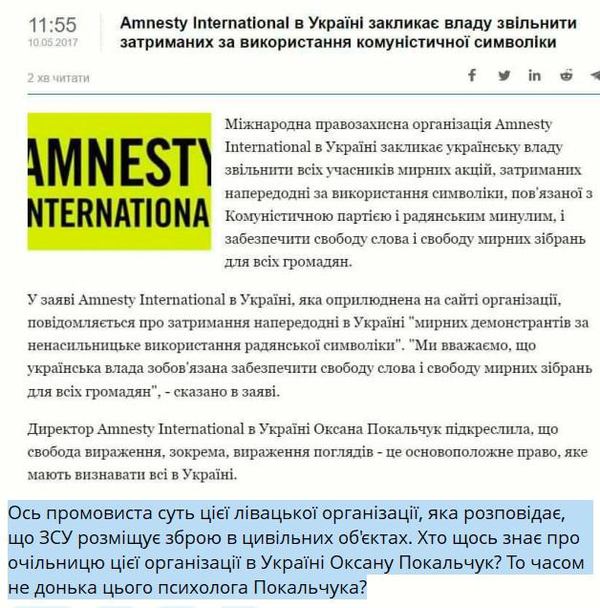 І дещо пізніше, 5 серпня 2022 року, в 164-й день рашистського вторгнення Ірина Фаріон , навівши приклад заяви цієї організації від 2017 року: «Ось промовиста суть цієї лівацької організації, яка розповідає, що ЗСУ розміщує зброю в цивільних об'єктах. Хто щось знає про очільницю цієї організації в Україні Оксану Покальчук? То часом не донька цього психолога Покальчука?»
