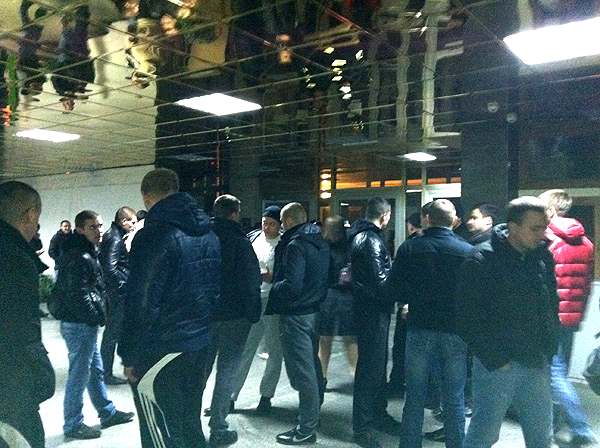 — Мы здесь, чтобы они (свободовцы) под этими дверями стояли, — отвечают ребята в трениках, вальяжно садясь на столы.