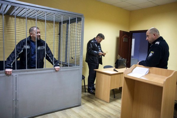Олег Смородинов в клетке подсудимого в зале суда в Ровно. Фото: Джозеф Сувенски для Нью-Йорк Таймс